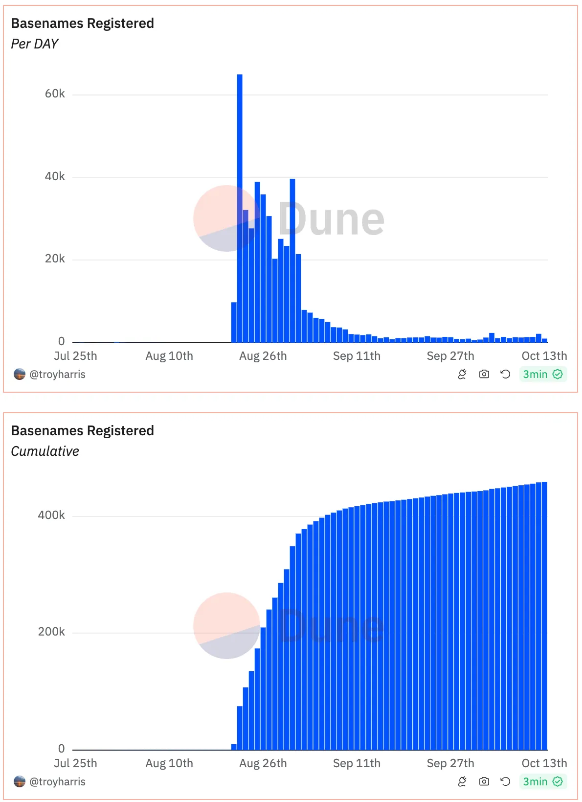 - Basenames operations on Base are cheap, but bridging in from Ethereum is not. Encourage users to bridge during off-peak L1 times (weekends, non-US business hours) if they ask you.